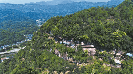 山腰曲栏还在,红砂石路面坚固如昨,依靠山势雕刻的上千尊摩崖造像,长年暴露在日光和潮湿空气里,已局部风化。这里有三殿一洞(观音殿、药师殿、老君殿、黄姑洞)15窟35龛,主窟为药师佛,也是造像中最美的一尊大佛。