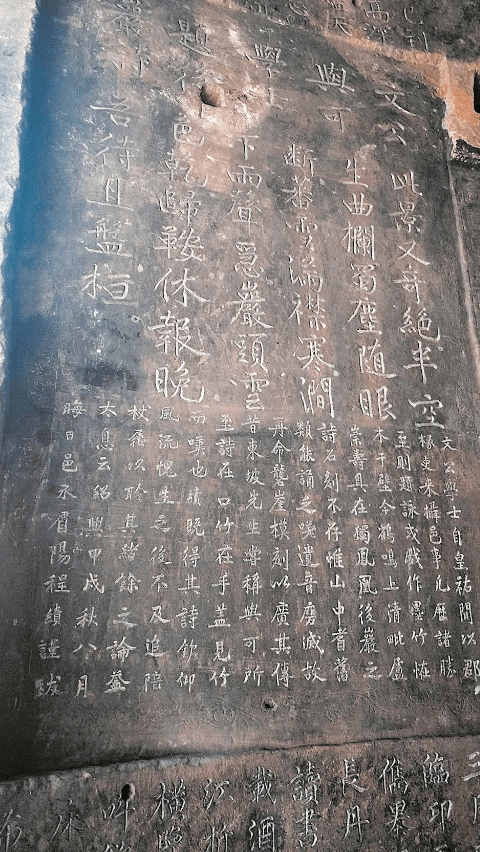 100年后,大邑邑丞、眉山人程绩“既得其诗,钦仰风流,愧生之后,不及追陪”,将文同此诗勒石,并写下题记。文同的诗和程绩的题记,至今保存完好,石碑上赫然刻写着“绍兴甲戌秋八月”,即宋高宗赵构绍兴二十四年,公元1154年。