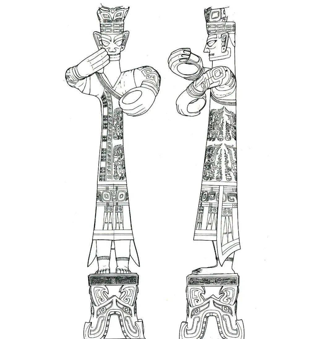 青铜大立人纹饰线描图(局部)