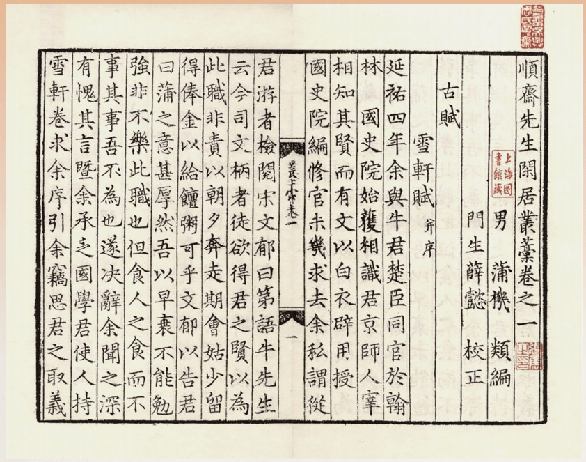 上海图书馆藏元刻本《顺斋先生闲居丛稿》书影(杜春雷 供图)