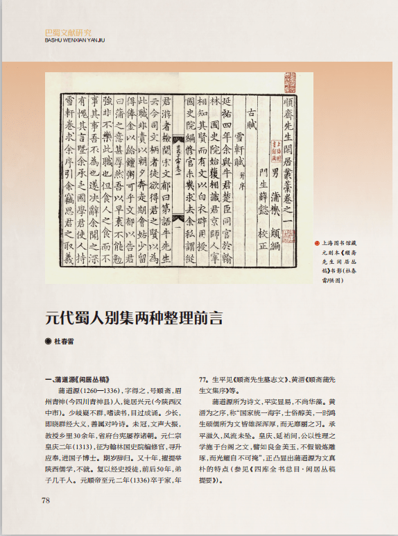 【文史英华】元代蜀人别集两种整理前言‖杜春雷