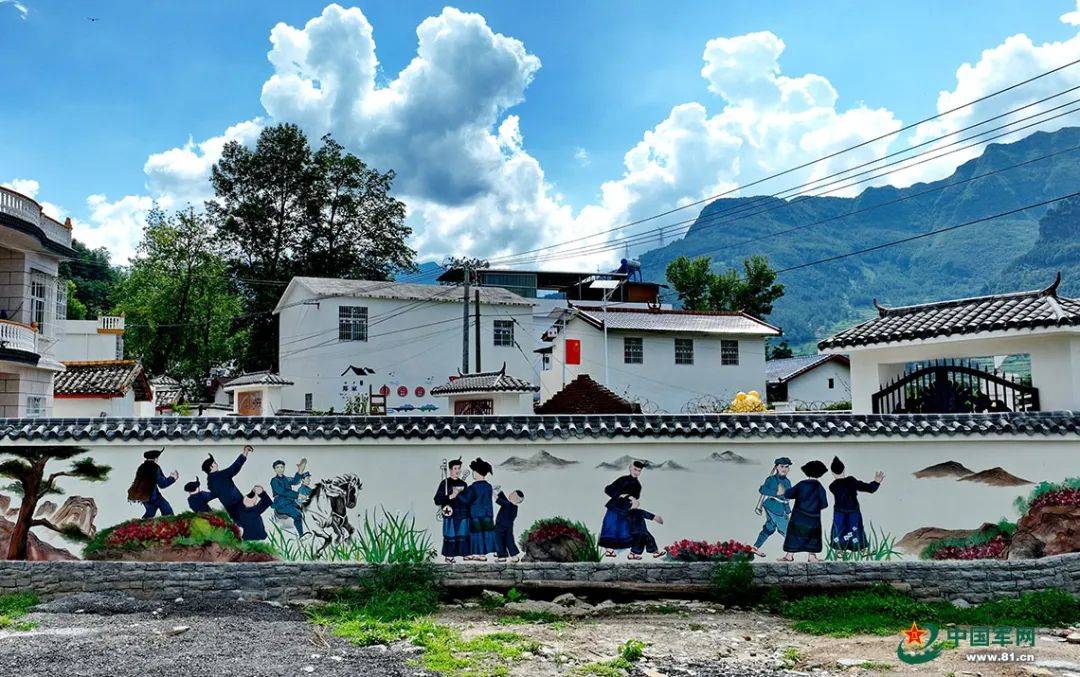 河坎村,红军进入越西后最先经过的村庄。今天,已经脱贫的小山村整洁安静,街道两旁绘有讲述红军故事的壁画,村民经营着“红军面馆”“红军驿站”等民宿。