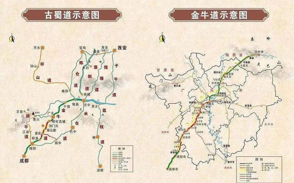 古蜀道及金牛道示意图(图片来源:剑阁文旅)