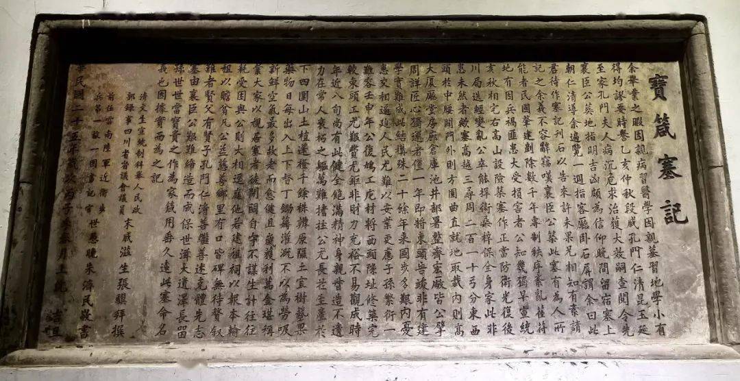 《宝箴塞记》是一块石刻碑记。该碑立于1936年3月上旬,刊刻在宝箴塞西塞正堂神龛之处,长2.5米,宽1.1米,阴刻小楷书,碑文竖排右行,共计37列,689字。