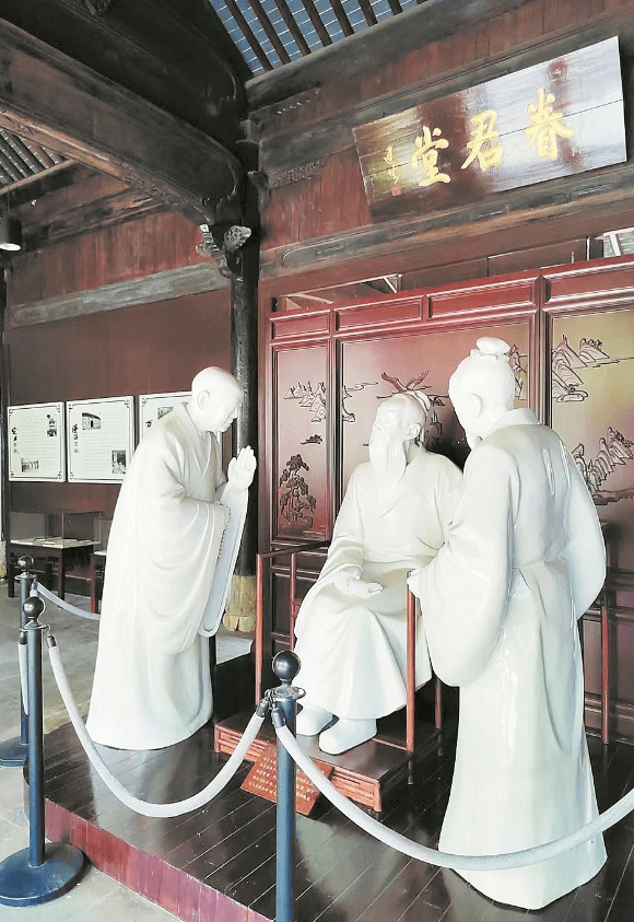 眷君堂前,东坡、维琳长老、钱世雄三人塑像