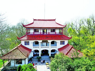 从昌黎书院往上至宜春台顶部,间有石级台阶、松柏、梧桐、樟树、槐树,层次相依,休息亭中有石桌、石凳;台阶渐至顶部时,有两道长长的折叠弧形,在春台阁前合而为一;春台阁台基下是一个微型小广场,松柏相绕。宜春台比江南三大名楼都早,比滕王阁早八百年,比岳阳楼早五百年,比黄鹤楼早三百年。宜春台台顶,原先是祭祀仰山神龙的地方,我眼前的春台阁,则是一栋飞檐翘角的三层楼阁,东西还各连着一座附楼。