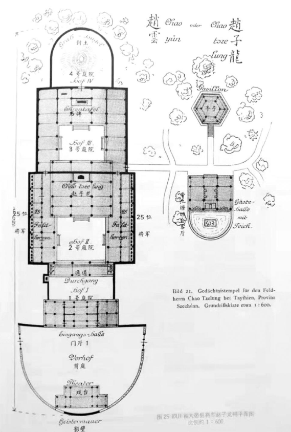 1914年,德国人恩斯特·伯施曼绘制的大邑赵子龙祠墓图