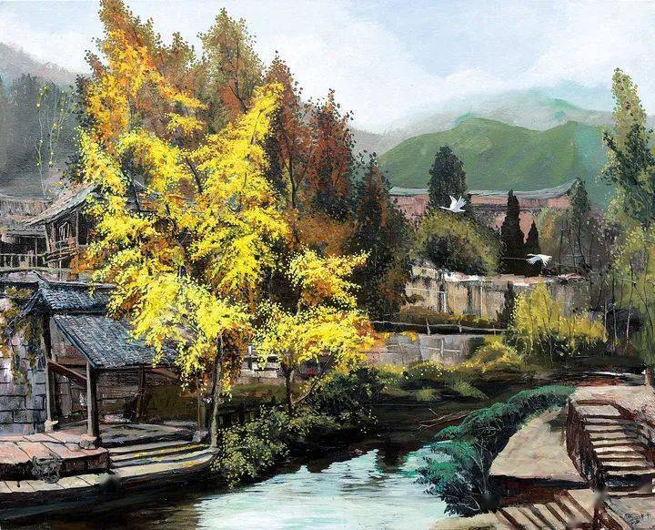 《上里金秋》(油画)竹林 作(图片来源:雅安日报)