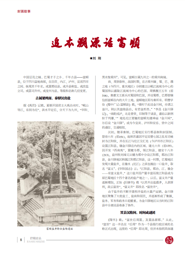 中国豆花之城、巴蜀才子之乡、千年古县———富顺县,位于四川盆地南部,在自贡、内江、泸州、宜宾四市之间。纵观其千年史,或置郡设县,或升县称监,或改监立司,或罢司升州,或变州为县,等级和名称几经变更。