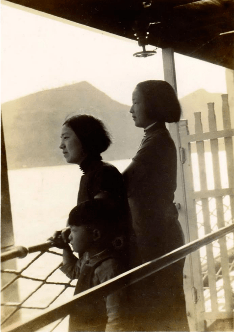 1938年,武汉大学学生陆秀丽(右)、唐良桐(左)乘“民贵轮”入川途中(图片来源:武汉大学档案馆)