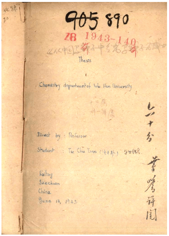 1943年国立武汉大学化学系学生涂主珍毕业论文《从中国马前子中分离马前子碱》(图片来源:听松庐)