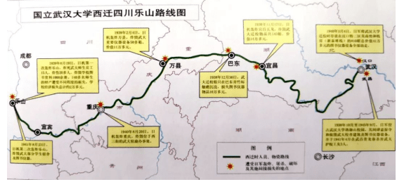国立武汉大学西迁乐山路线图(武大新闻网资料图)