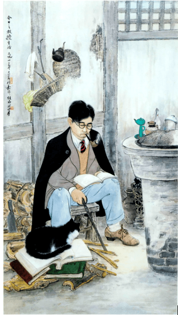 1944年11月,著名国画家关山月在乐山的画作《今日之教授生活》,画中人物为著名数学家、国立武汉大学数学系教授李国平(图片来源:听松庐)