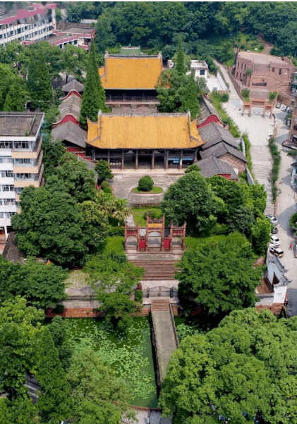 位于乐山市市中区月咡塘的乐山文庙,古称嘉定府文庙,始建于唐武德年间(618—626年),原址在乐山古城西南育贤门外育贤坝上。明初大渡河河水泛滥,三迁得胜地,天顺八年迁建古城西北制高点高标山麓,留下“玄坛守此地,留与圣贤居”的历史美谈。明天顺八年(1464年)定址于高标山麓,惜明末毁于战火,清康熙初年张能鳞重建,经嘉庆、道光年间培修,保存至今,距今已有550多年历史。