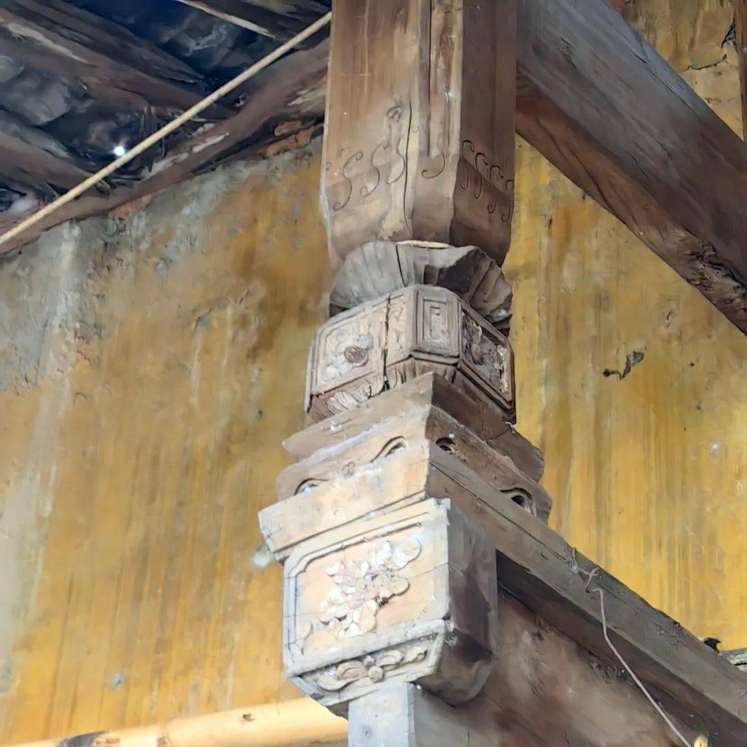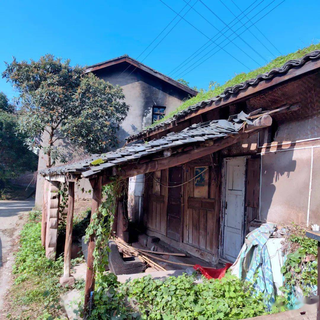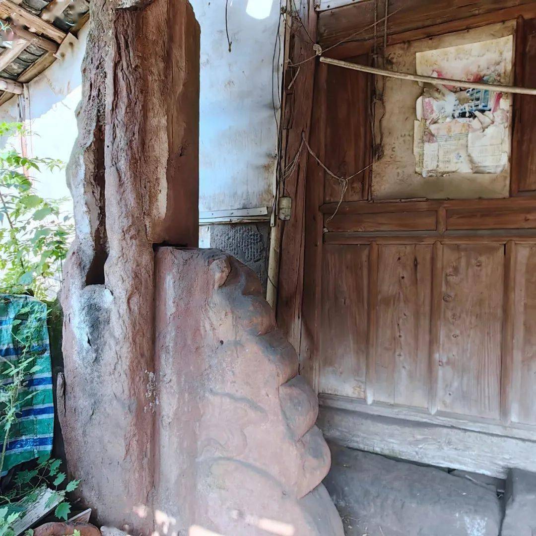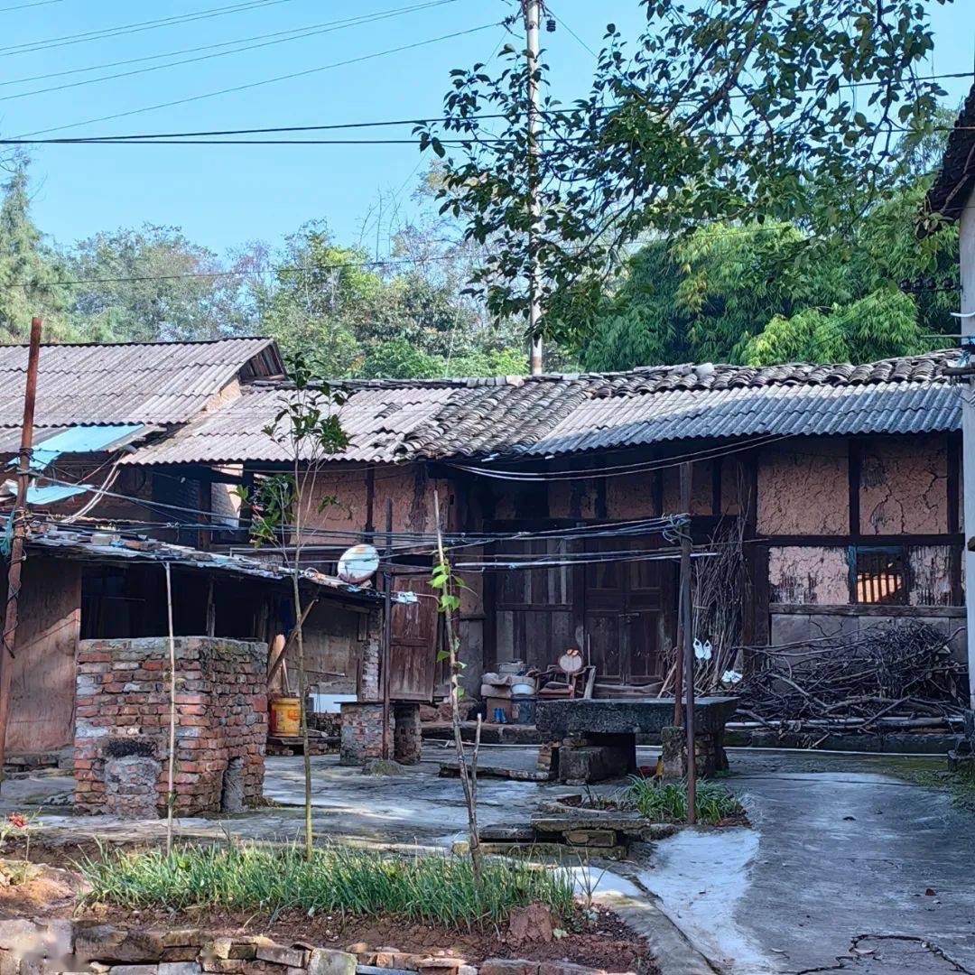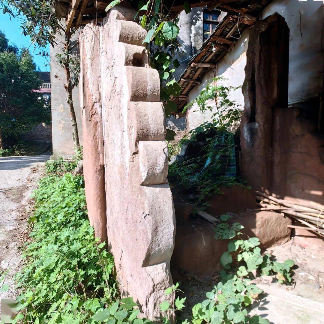 在一段较为平坦的古道旁,尚残存竖立着一座明代建的老牌坊,石牌坊上的花纹图案已不可辨,仅能看到一两处云纹线条。此牌坊处有一间老屋,木门紧闭,据传曾是一小店铺。距此不远处,亦存有一座老旧的木结构青瓦房,篾笆编制涂抹泥巴的土墙,此屋木门坎仅剩半截,屋檐下有一通旧石磨。估计此旧屋有百年历史。