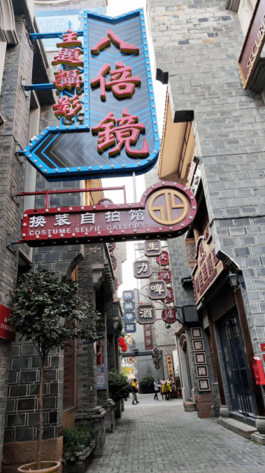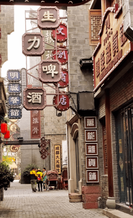 再比如,锦门景区复制了老成都的一个锣锅巷和一个烟袋巷。