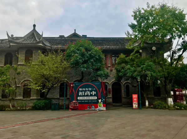 又如,锦门景区复制了一个成都老邮局。这个老邮局是近代信息文明融合西方风格的一个标志性建筑,全称“川西邮政管理局”,位于成都市暑袜街。