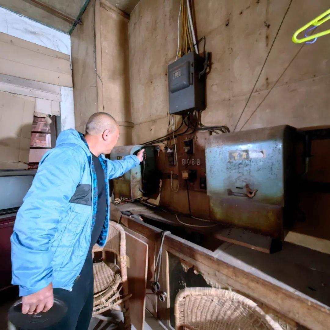建于20世纪50年代初,红砖青瓦石基砖混结构,位于原川北行署主干道右侧大致80米石坎处。配电室和值班室组成一排T字形建筑。配电室用红砂石条砌基座,有隔潮层,隔潮层石壁嵌置铸铁栅格罩通气;东、西两立面墙有木格玻璃窗,北面正门双开木板门,南立面墙壁有上圆弧形带长方形木格玻璃窗,室内采光通气很好。保存有电器仪表台、高压配电表等。老配电房外观朴素无华,但显得很有特色,夕阳余晖沐浴下,好似油画般的端庄绚丽,色彩斑斓。