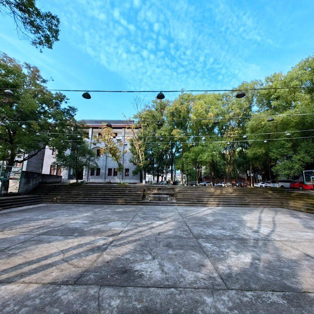 位于川北行署图书阅览楼前,系一标准篮球场,东、西侧安装篮球架。篮球场地面原系三合土夯实,现为水泥地面。四周系石质阶梯看台,北面看台正中处有一水泥制成的主席台。篮球场上空拉三道铁丝缆线,挂数盏电灯用以照明。该露天风雨篮球场简单经济实用,维修简便快捷。