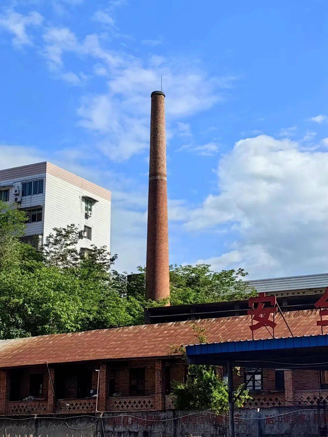 建于20世纪50年代末,现存锅炉房,有两间砖柱木结构青瓦房,后来增修水泥混合结构用房作锅炉房操作管理房,有检测水质量的检验室。锅炉操作管理室中间的锅炉静静地立在原处,操作管理室墙壁上仍张贴有《岗位管理规章制度》。锅炉房最有特色的是用红砖砌成的圆筒形状的老烟囱,高近30米,烟囱外壁砖线规范清晰,外观质量上乘。至今,老烟囱外壁上的铁扶梯尚好,排列整齐,炉道与烟囱道转角处依然完好。蓝天白云下,那挺拔高耸的红砖烟囱,定会带给人们几许自信和良多启迪。据学校老职工回忆:历经半个多世纪的老烟囱,早年用于学校生活供热水烧锅炉排烟灰之用,后来也作为校办工厂锅炉房使用。它是老一辈人对学校的深厚情感的体现,也是历史的记忆和见证。20世纪60年代初,时任南充师范学院院长的王叙五(20世纪30年代初参加革命,曾任川北区党委委员、组织部副部长兼人事局局长)老领导,非常关心师生员工的生活,曾冒雨到锅炉房看望慰问值班的锅炉工,嘱托锅炉工一定确保安全,维护好锅炉,保证学校正常供应热水,保证学校食堂蒸好饭食。很长时间学校锅炉房一直正常使用,20世纪90年代末,国家重视环保要求停止烧煤,改用天然气后,锅炉房烟囱就停用了。