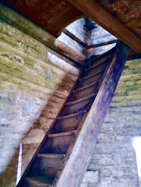 回澜塔顶部木板楼梯(齐筱玲 摄)