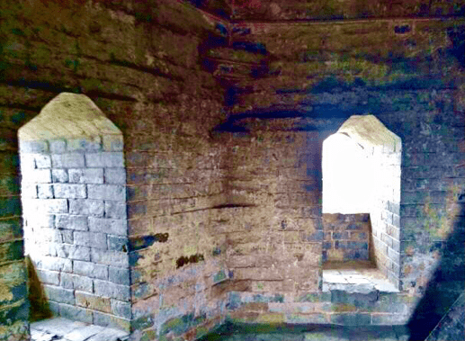 邛崃回澜塔下部若干层有砖砌的蹬道,结实而有力。上面4层的阶梯系木质,狭窄而陡峭。