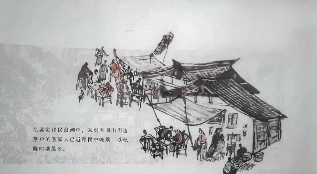 在客家移民潮中,来到天回山周边落户的客家人已近移民中晚期,以乾隆时期最多。据当地清同治丁卯(1867年)本《严氏族谱》载,长乐严氏一支:“清朝御极以来,康熙年间上川者有人,雍正年间至蜀者有人,极之思乐郊而步后尘者,更多于乾隆时矣。”该支严氏在这三个时期都有入川的族人,先后落业于华阳、新都等地的杉板桥、曹家冲、龙潭寺、傅家店、院山寺、方家祠、崔家店、红石硚、狮子庵、滥泥沟、繁阳山等处。这些地点,与前述客家李氏族人落业地大致在同一区域,也正是成都东山广东籍客家人的集中聚居地。