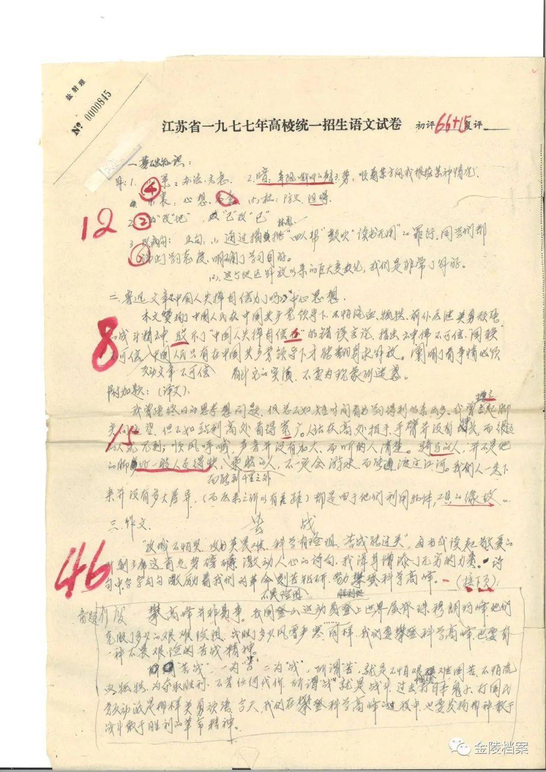 这一批赶上高考“头班车”的77级大学生,几乎每个人都有一段不寻常的求学经历。当时在六合县瓜埠公社中学当临时代课教师的刘方回忆起自己的高考经历,感慨万分。1977年的高考因报名人数太多,分初试和复试两次进行,11月28日至29日进行初试,12月23日至24日进行复试。因他的语文基础较好,高考的作文被六合县当作范文。1978年2月26日,刘方接到家中电报:“已录取南师,速归。”那一年,六合竹镇公社共考取大学1人、中专4人。