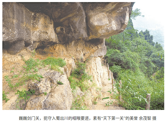 1172年,陆游途经剑门蜀道入蜀,写下《剑门道中遇微雨》。图为游客体验壁立千仞的剑门蜀道 (不觉 摄)