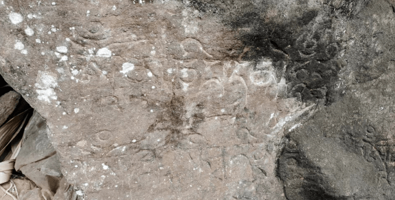 2018年,在荥经县安靖乡安乐村栖止铺现在叫吹石铺一处悬崖下的石头上,发现了摩崖石刻,经学者考证为“唵嘛呢叭咪吽”即观音菩萨的六字真言。相传,观世音菩萨看见人间疾苦,滴下六滴眼泪,变成六字真言。世人常念诵可消除业障,增长福慧。佛教传入西藏后,藏族人把六字真言刻在转经筒上,转一圈相当于自己念诵一遍;刻在山上的经幡上,风吹动一次就相当于自己念诵一遍;刻在路边石头上,被人念过一次就相当于自己念诵一遍,因此可以为自己积累福报。摩崖石刻的发现,证明安靖乡的茶马古道上汉藏民族交流之频繁。