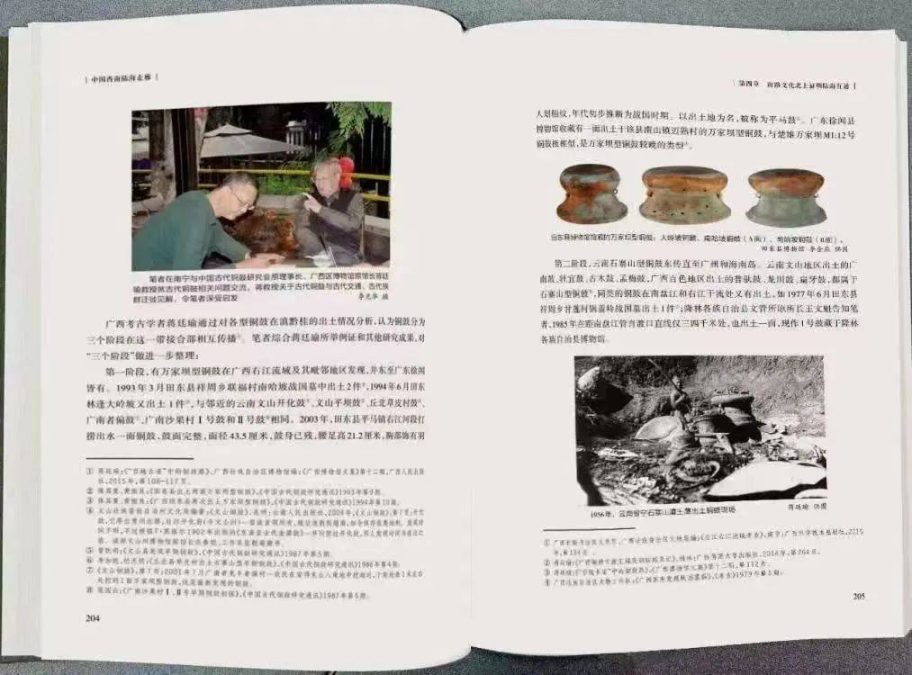 除文献资料,本书更多篇幅的内容来自考古分析和田野考察。赵晓东先生广泛阅读各地考古发掘报告,几乎走遍走廊沿线各地博物馆观察相关器物(如对铜鼓和佛教相关文物的考察),采用考古类型学的研究方法,破解“遗物”所承载的历史信息,对沿线各地的人群、 商贸和文化交流与互动提出很多富有创见的观点和极具说服力的论证。同时,他利用田野考察的方法,去验证史料记载或学者观点的真伪,收集民间依然流传的习俗、语言和传说等,为确认路线或展开讨论提供了更多信息。需指出的是,他的田野考察并不是固定在一处作精深的人类学调查,更不是走马观花式的旅行。他的田野考察方法与近年学界倡导的“多点民族志”或“线索民族志”的方法相契合。