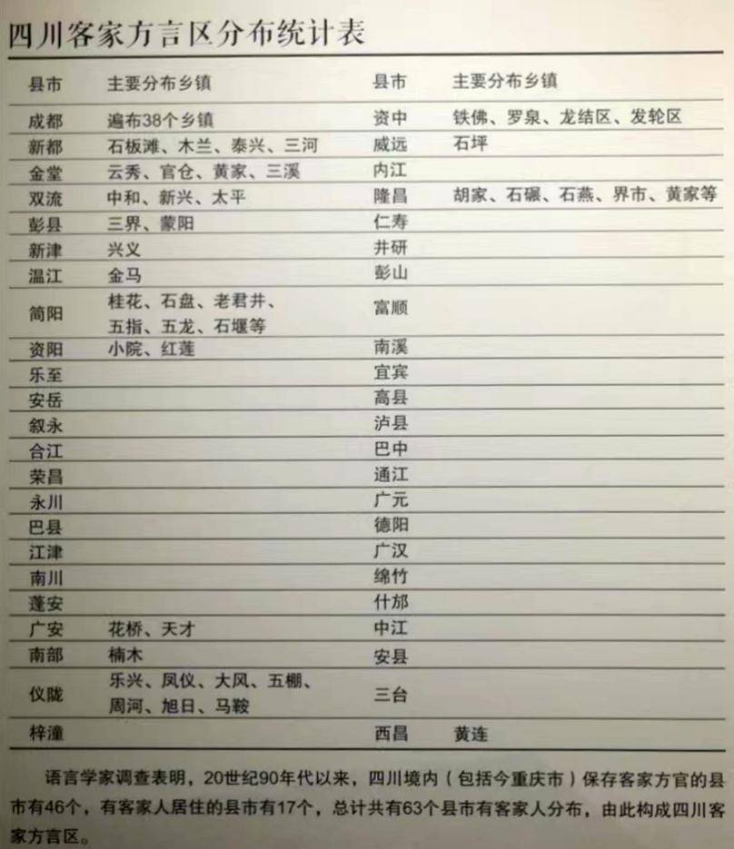 四川客家方言区分布统计表