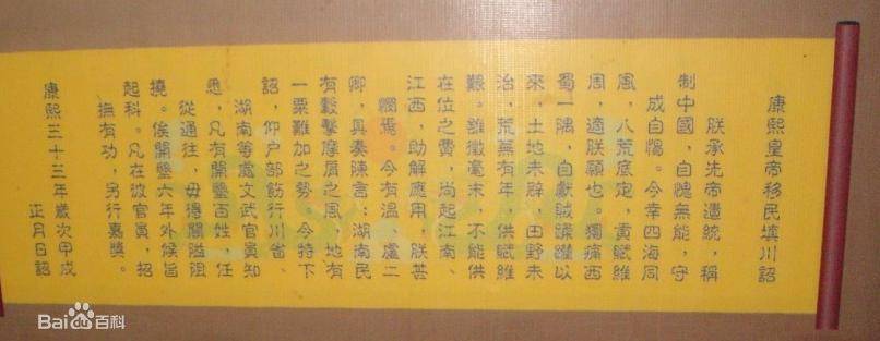 康熙三十三年移民填川诏书