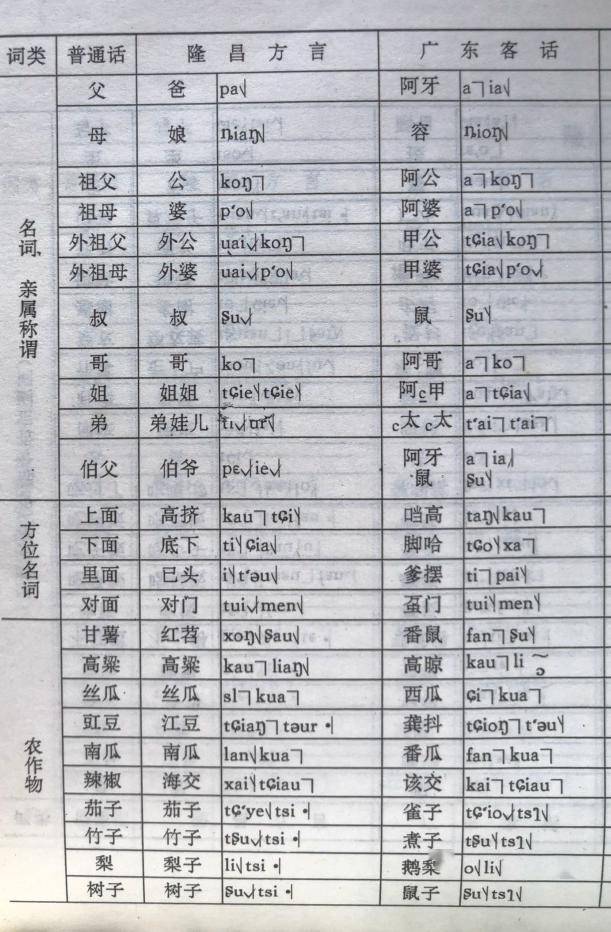 隆昌常用客家话读音