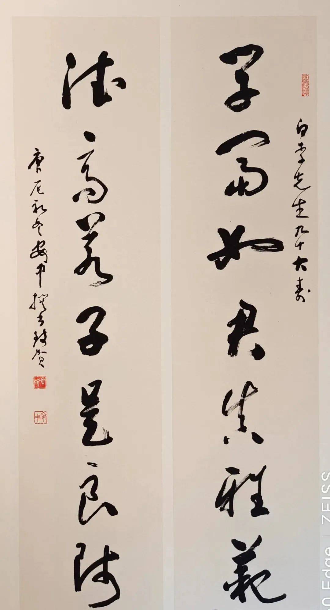 安中先生之先父良弼公,是清末民初泸州著名拳师,是我的先考何白李的小学、中学体育老师。先考八十岁后撰文追怀少年学生生活曾专门忆及良弼公。良弼公长于国术和中医,诗词书画棋也颇有造诣,几件事颇让后人感怀:曾为泸州籍画家蒋兆和少时(1915-1917)拳师,其为世家邻居。民初(1916-1920)曾为朱德驻泸城防司令部拳术教员。1927年曾参加刘伯承领导的泸州起义,任参与守城民防大队拳术教官。时先考也以川南学生联合会主席身份参加泸州起义。2000年初冬,先考九十岁时,安中先生撰并书联为贺:“学富如君真雅范,德高若子是良师。”2013年秋,我应邀为泸州所撰《张坝桂圆林赋》,后为安中先生挥毫,勒石泸州长江南岸张坝桂圆林生态公园,皇皇巨制,堪称其晚年行草书代表作。