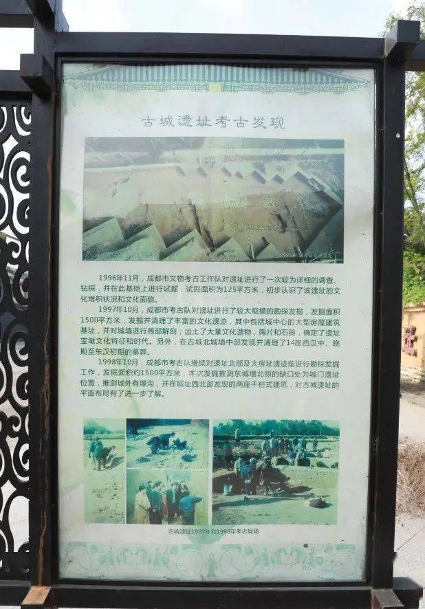 1998年底至1999年初,考古队对古城遗址进行第三次考古发掘,在发掘区西北方位,发现两处干栏式建筑。专家认定,该建筑基址为4000多年前(新石器时代晚期)的遗物,可能是当时部落首领的政事活动中心。这个时间,比成都古城建设的年代还要早。