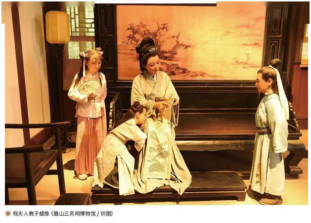 程夫人出生在那样的家庭,本身受过良好教育,“生而志节不群,好读书,通古今,知其治乱得失之故”。她不仅为苏氏家族生养了苏轼、苏辙两个有出息的儿郎,带来了家族的繁盛,而且她还以一双柔弱的肩膀扛起家庭的重担,帮助丈夫卸掉治家治生的烦恼使其得以安心向学,使丈夫27岁之后尚能发愤图强而终成大名。在相夫的同时,程夫人不忘教育孩子。司马光在《苏主簿夫人墓志铭》中这样写道:“府君(指苏洵)年二十七犹不学,一旦慨然谓夫人曰:‘吾自视今犹可学。然家待我而生,学且废生,奈何?’夫人曰:‘我欲言之久矣,恶使子为因我而学者。子苟有志,以生累我可也。’即罄出服玩鬻之以治生,不数年,遂为富家。府君由是得专志于学,卒成大儒。夫人喜读书,皆识其大义。轼、辙之幼也,夫人亲教之。常戒曰:‘汝读书勿效曹耦,止欲以书自名而已。’每称引古人名节以励之,曰:‘汝果能死直道,吾无戚焉。’已而二子同年登进士第,又同登贤良方正科目。宋兴以来,唯故资政殿大学士吴公育与轼制策入三等,辙所对语,尤切直惊人,繇夫人素勖之也…… 呜呼!妇人柔顺足以睦其族,智能足以齐其家,斯已贤矣。况如夫人,能开发辅导,成就其夫、子,使皆以文学显重于天下,非识虑高绝,能如是乎?古之人称有国有家者,其兴衰无不于闺门,今于夫人,益见古人之可信也。”