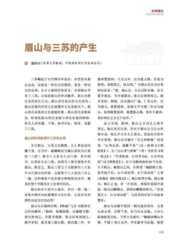 【文史英华】眉山与三苏的产生‖潘殊闲