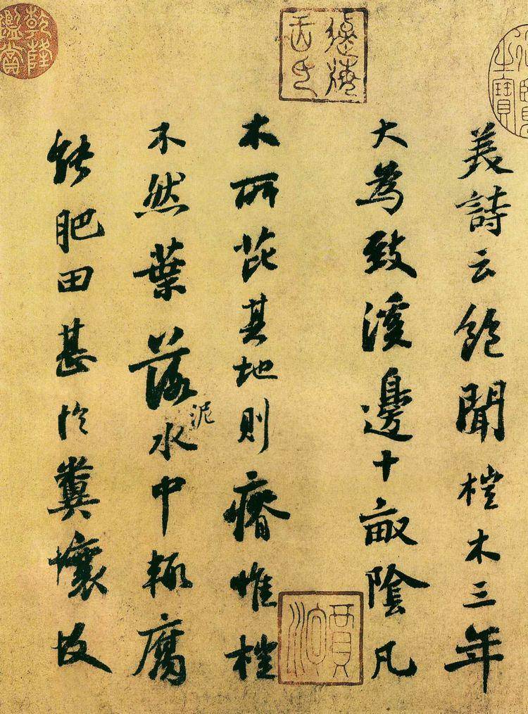 苏轼 书 杜甫 诗《桤木卷帖》卷影:饱闻桤木三年大,与致溪边十亩阴(台北故宫博物院 藏)