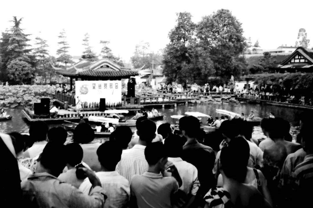 除了祭祀,蜀人还会在端午节这天,聚集望丛祠,以赛歌形式,歌咏二帝恩泽,这就是望丛赛歌会。郫都农人爱唱田歌,栽秧子要唱歌,薅秧子要吼薅秧歌,形成了风气。薅秧季节,每到一处都能听到高亢的薅秧歌,久而久之就出现了一些吼秧歌的高手。二道秧子薅完后,农闲了,一些吼秧歌高手余兴未尽,就相约到望丛祠来一展歌喉,比试高低。后渐成习俗,因为是“吼”歌,声音高亢洪亮,所以民国《郫县志》不无夸张地说,望从祠“端午日,游人如蚁,农民竞田歌,声闻数里”。