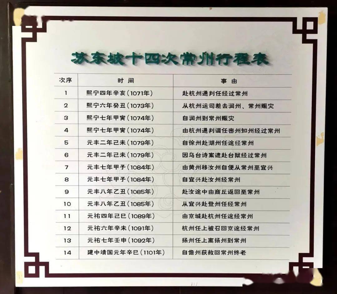苏东坡十四次常州行程表(蓬州闲士摄于常州市苏东坡纪念馆,图片来源:四川方志图库)