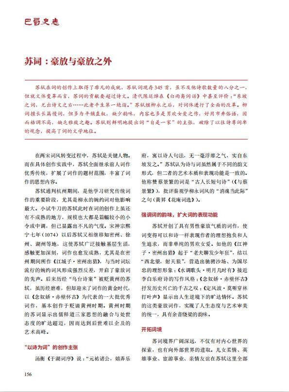 在两宋词风转变过程中,苏轼是关键人物。而在具体创作实践中,苏轼全面继承前人词作优秀传统,扩展了词作的题材范围,丰富了词作的思想内容。