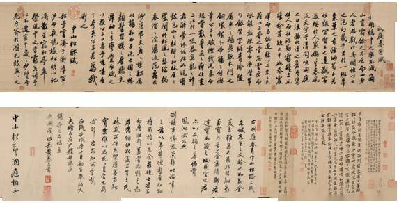 苏轼流传至今的代表作品有楷书《洞庭春色赋·中山松醪赋》合卷、《赤壁赋》,行书《寒食帖》等。