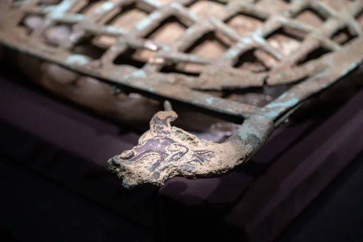 三星堆青铜网格状器(“月光宝盒”)有四个龙头把手。