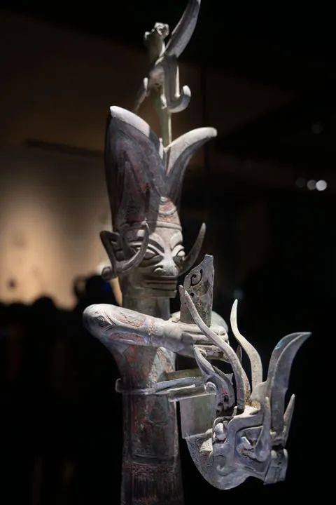 还有1986年1号祭祀坑出土的青铜龙柱形器,一条长有羊角和山羊胡须的龙踞于柱首,独特的外形和神秘的气息令人敬畏。