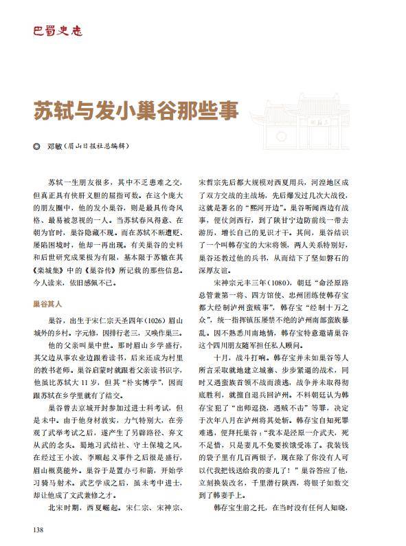 【文史英华】苏轼与发小巢谷那些事‖邓敏