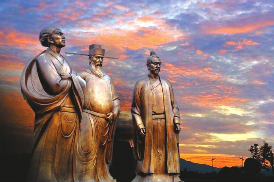 “铜山三苏”(苏易简、苏舜元、苏舜钦)雕像(中江县委宣传部 供图)