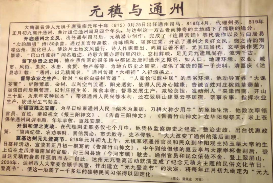 《元稹与通州》(邓高 摄于达州元稹纪念馆)