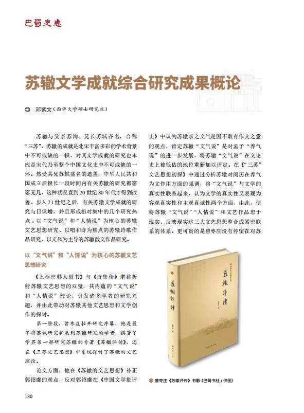 【文史英华】苏辙文学成就综合研究成果概论‖邓紫文