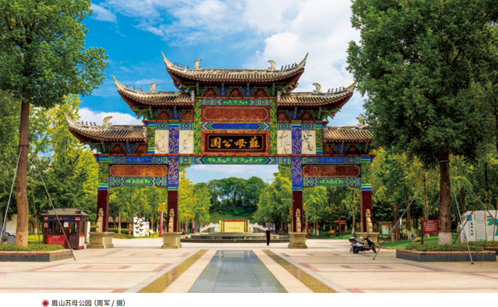 同时,苏轼公园(原名诗书公园)等陆续建成开放。徜徉眉山街头,苏风苏韵,所在皆是。三苏文化元素命名的市政公用建筑、学校、群众文化休闲设施和景观小品星罗棋布,以三苏文化元素命名市区街道110余条,让人们目力所及之处,都有浓郁的三苏文化气氛。